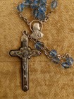 Vintage Catholic Rosary Blue Faceted Glass Beads Silver Tone Crucifix Italy
