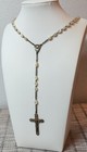 Vtg 925 Italy Sterling Silver Beaded Gold Vermeil Rosary Cross Necklace 18”