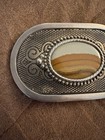 Vintage Polished Agate Stone Belt Buckle Orange Silver Tone Geode Dad Gift