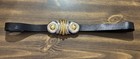Vintage Belt Black Leather Silver Buckle Rare Unique Women's Fashion Size M-l