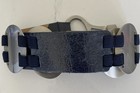 Vintage Chico's Leather & Elastic Expansion Belt Blue Elastic W/ Silver Sz Sm