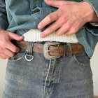 Y2k Brown Leather Belt Silver Buckle Adjustable Unisex Vintage New