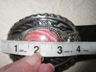 Vtg Black Genuine Leather Flower Silver 4x3" Oval Buckle Belt Size 30/34"