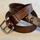 Vintage Coffee Brown Single Stitch Leather Belt With Silver Buckle