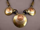 Vintage Mixed Metal Medallion Copper,brass,wood Tribal/boho Necklace