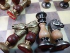 Vintage Wood Folding Chess Board Set With Brass & Silver Tone Metal Pieces