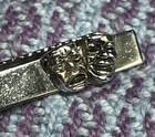 Vintage Silver Tone Theater Masks Comedy Tragedy Tie Bar Clip Mens Jewelry
