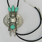 Vintage Navajo Dennis Smith Sterling Silver Turquoise Bolo Tie Signed Ds