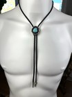 Vintage Bolo Tie Turquoise Stone Silver Sterling Western Cowboy Men Oval Navajo