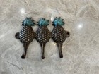 Vintage Solid Brass Pineapple Key Holder With Outstanding Patina Wall Mount