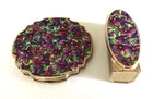Vtg. Stratton London Floral Violets Powder Compact & Mirror Lipstick Holder Set