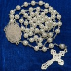 Vintage Heavy Glass Pearl Rosary With Cameo Madonna & Child Center Medal