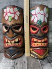 2 Vintage Hand Carved Tiki Mask Wooden Wall Decor Tribal Bar Face Indonesia