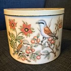 Vintage Daher England Tin W/ Lid Metal Storage Box Songbirds Floral Half Oval