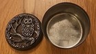 Vintage Owl Metzke Pewter Trinket Box Metal Tin Box Round Container Pill