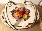 Vintage Oval Tin Box Basket Floral Sewing Craft Lunch Cookie Bread Container 11"