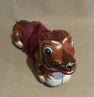 Vintage Mechanical Wind Up Jumping Fur Dog Litho Tin Toy, Japan