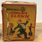 Vintage Tin Litho Mechanical Wind-up Juggling Clown Toy W/box Japan 1950s
