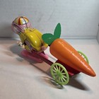 Vintage Japan / Mechanical Hopping Bunny With Carrot Cart / Tin Litho Windup Toy