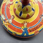 Vintage Working Toy Ohio Art 7" Tin Metal Litho Spinning Top Dog Juggler Drummer