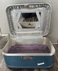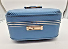 Vintage Blue Hard Shell Leather Train Cosmetics Case Travel Smart - No Key