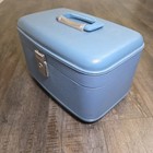 Vintage Train Makeup Overnight Luggage Case Blue Mid-century