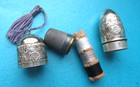 Antique Ornate White Metal Plated Brass Travel Sew Kit,thimble,needle Case.