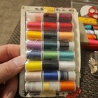 Travel Sewing Kit In Plastic Case 13 Mini Spools, Thimble, Needle, Threader Etc