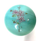 Vintage Green Onyx Stone Trinket Jewelry Box Hand Painted Floral Lid Hinged