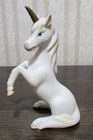 Vintage Rainbow Unicorn Figurine Ceramic Sitting Sculpture Matte White Gold