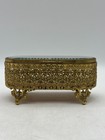 Vintage Vanity Gold Tone Victorian Style Ormolu & Glass Jewelry Casket Box