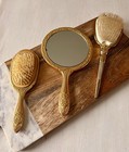 Vintage Gold Tone Vanity Hand Mirror And Brush Set