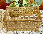 Vtg Gold & Acrylic Hollywood Regency Vanity Makeup Holder Basket Weave Design