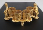 Art Nouveau Gold Filigree Brass Cherub Vanity Makeup Toothbrush Holder Vintage