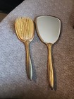 Vintage 2 Piece Dresser Vanity Set Gold Tone Hand Mirror Brush Comb Floral Antiq