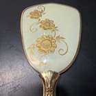 Vintage Brush & Hand Held Mirror Vanity Set Gold Shimmer Rose Accent