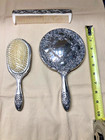 Vtg Silverplate Ornate Vanity Set Hand Mirror Hair Brush Small Brush Japan Read