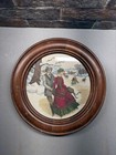 Stunning Vtg Picture Peacock Oval Convex Wall Hanging Hand Painted Gold Gild