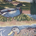 Vtg Duck Wildlife Tapestry Woven Textile Mallard Scene Art Decor