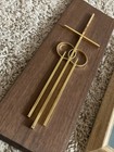 2 Vintage Wood & Brass Christian Marriage Gifts - Cross Wall Plaque - Mcm