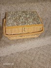 Vintage Wicker Sewing Basket Box Woven Floral Tapestry Padded Lid 11 X 7 X 7