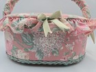 Vintage Pink Sewing Basket Floral Lined Wicker Box White Handle Organizer Kit