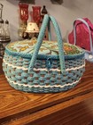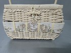 Vintage Wicker Sewing Basket Caddy Retro Boho Floral Handwoven