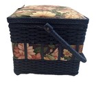 Vintage Azar Woven Wicker Sewing Basket Box Floral Tapestry