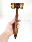 Vintage 11" Carved Turned Wood Judges Gavel Hammer Law Office Desk Decoration