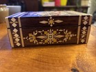 Vintage Carved Wood Inlaid Hinged Top Wooden Box India 6.125” X 4.125” X 2.5”