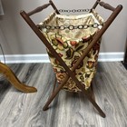 1960s Vintage Sewing Caddy Basket With Wooden Folding Frame 21” Tall Floral
