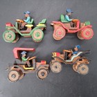 Lot Of 4 Vintage Handcarved Wooden Automobile Toys Made In Japan W/ Original Box