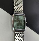 Vintage Seiko Slim Tank Quartz Men Green Dial Dress Watch-free Shipping
