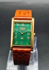 Vintage Seiko Slim Quartz Men's Wrist Watch Gold Dial With Green Strap.